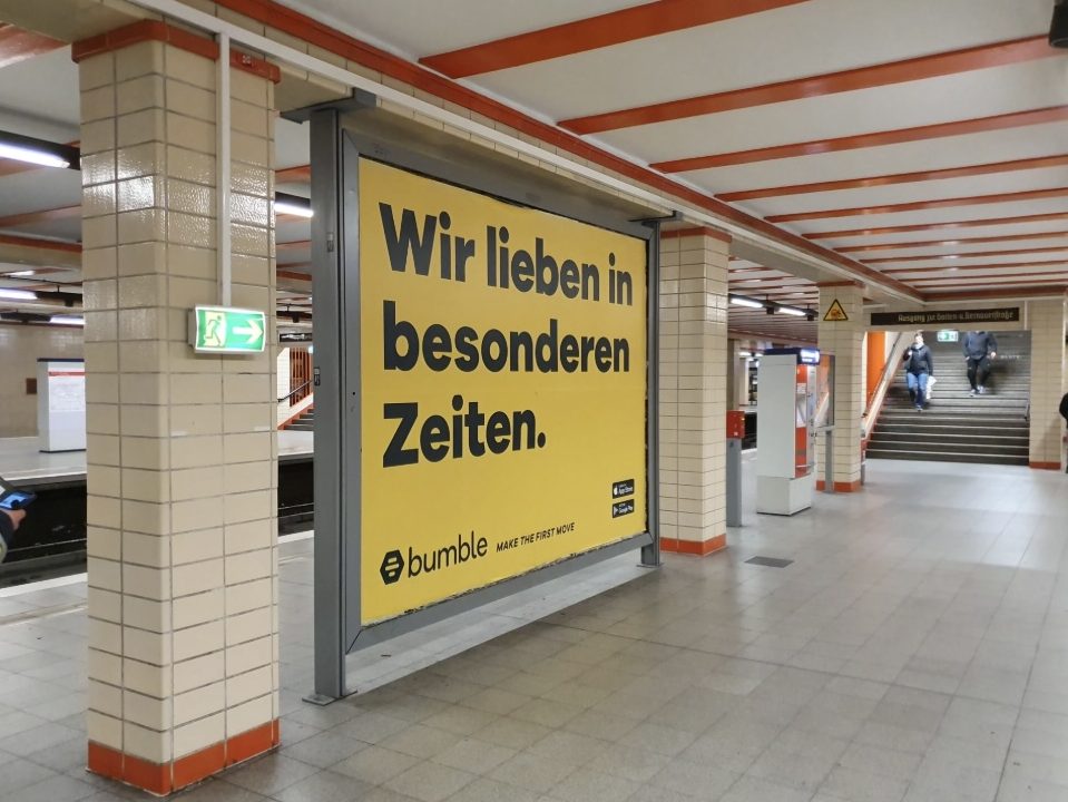 Dating proved a tough challenge during the pandemic. Bumble tapped into the mood with witty lines that gave people hope. Instead of simply translating the UK campaign, I created lines that resonated locally, in Berlin, Hamburg and Munich, encouraging lonely hearts to connect.