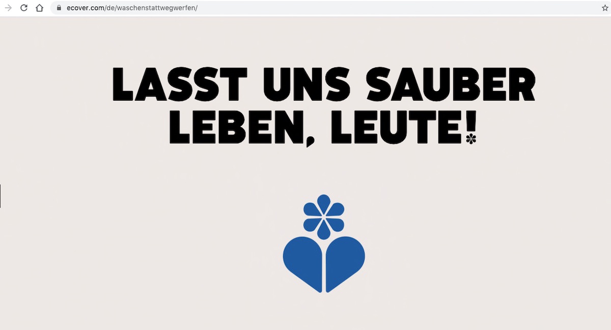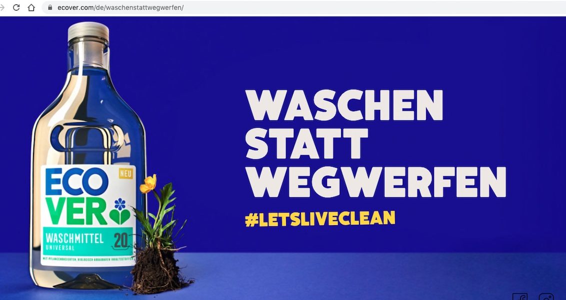 Garments washed with Ecover last longer and are less likely to end up in landfill – a strong message that demanded German headlines with the same punch as the English original. ‘Wash don’t waste’ became ‘Waschen statt Wegwerfen’ – (Wash, don’t throw) using a similar alliteration.